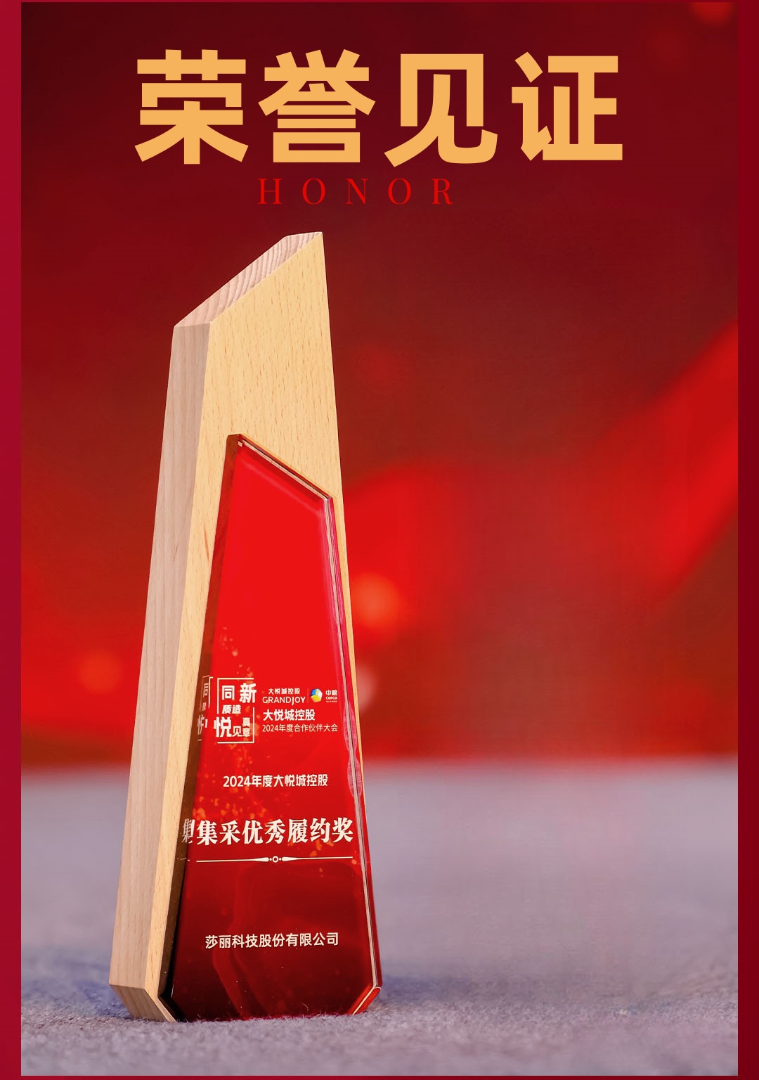 合作过程中,莎丽科技始终坚持“客户至上”,秉持敏捷、灵活的决策,力求精益的生产和流程管理,为大悦城提供全过程、全方位的服务支持,助力大悦城多个项目建设。此次荣获“集采优秀履约奖”,是对莎丽股份公司的认可和信任,是我们前进不竭的动力。